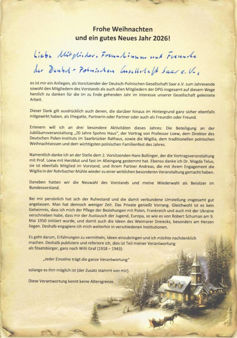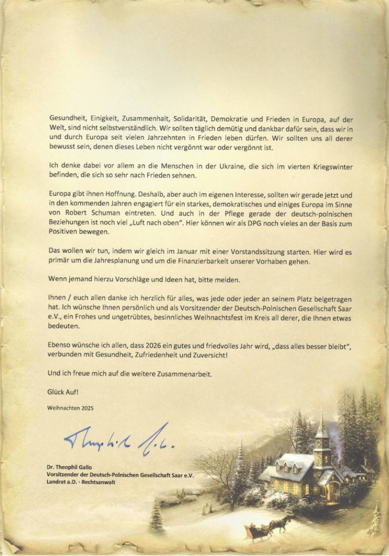 Weihnachtsgrüße des 1. Vorsitzenden der DPG Saar